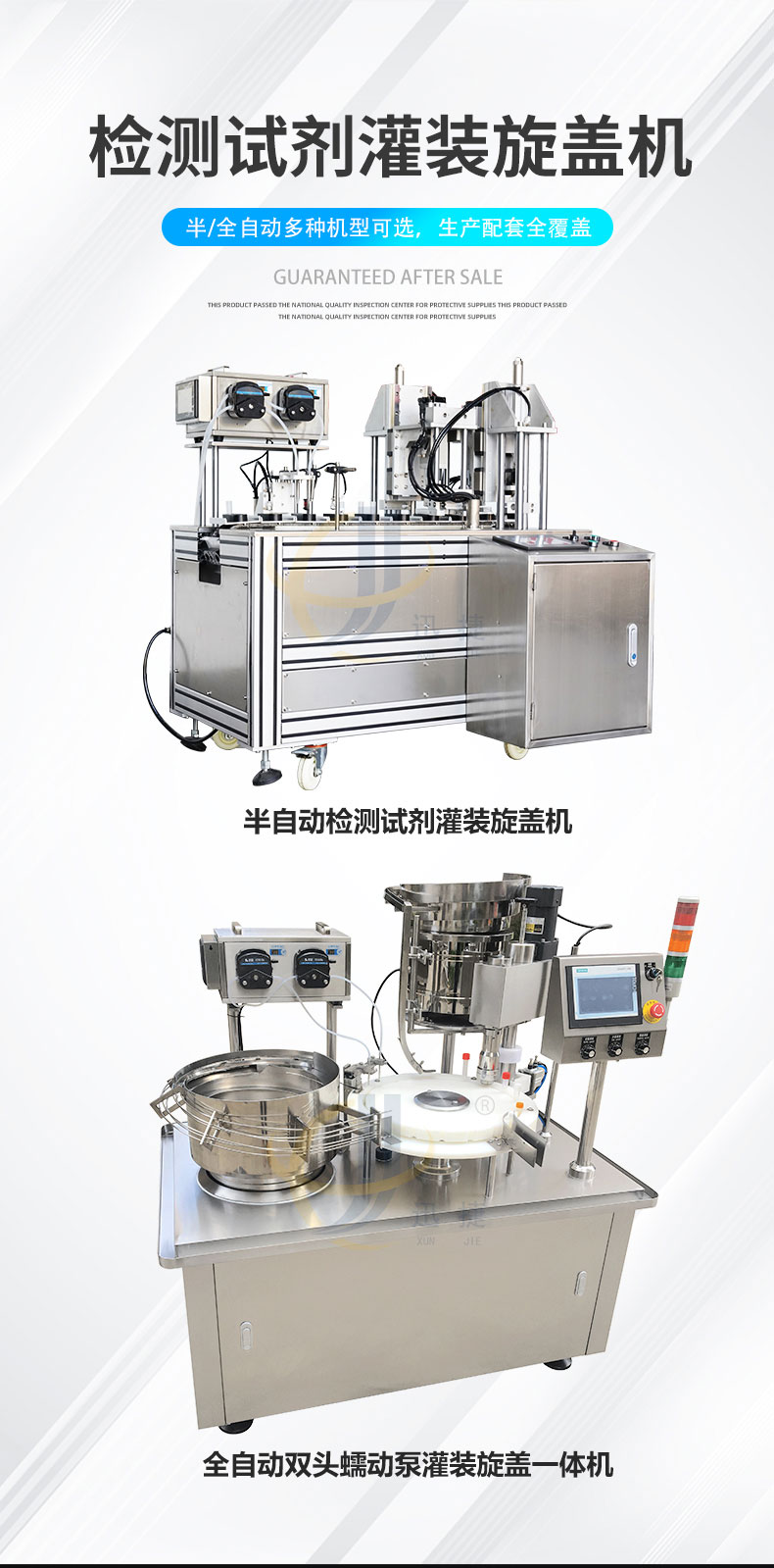 診斷試劑灌裝旋蓋機適用于診斷試劑、液體采樣管等管狀容器。本機可選配防塵罩搭配層流罩(FFU)結(jié)構(gòu),可達到局部百級環(huán)境下完成灌裝及封蓋。