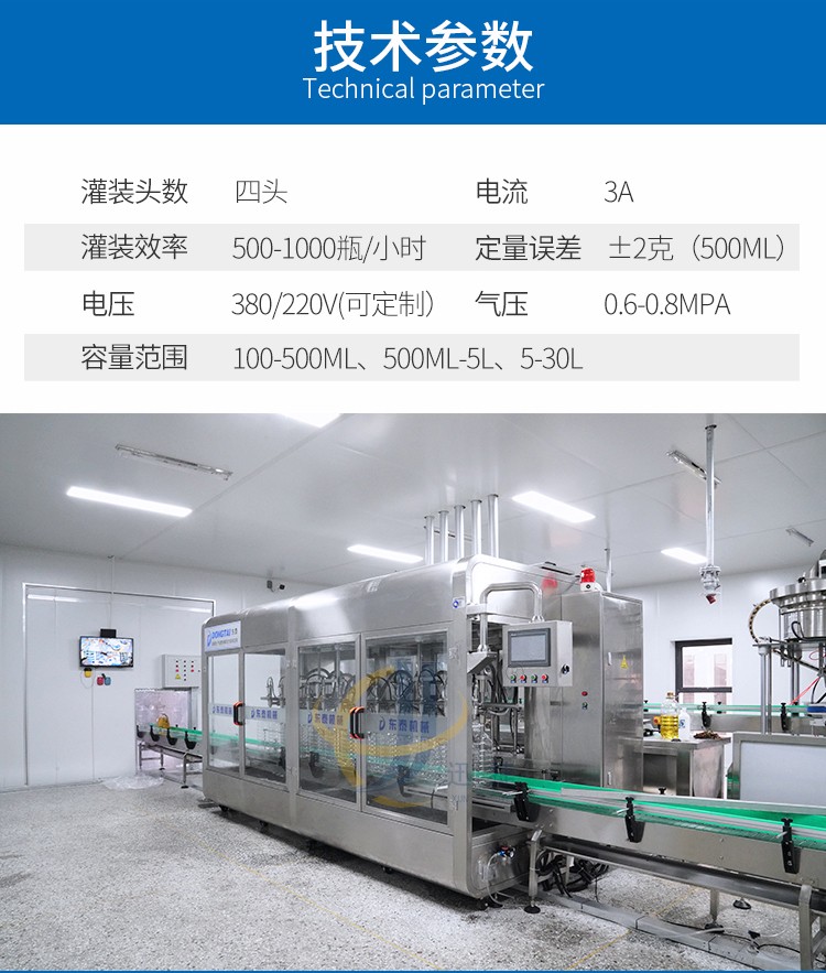 食用油灌裝生產(chǎn)線2-16頭可定制,兼容6種瓶型,容量范圍內(nèi)可兼容多種瓶型的灌裝,一鍵式操作,開(kāi)機(jī)即能使用。
