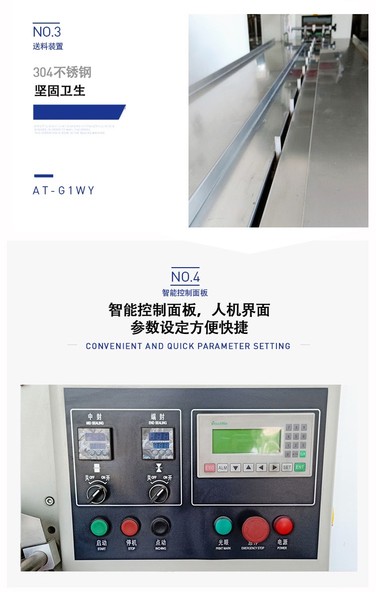 C、先進(jìn)的微電腦包裝控制器,優(yōu)良的人機對話模式,使速度、袋長、切點位置檢測等都可在界面上直接顯示。