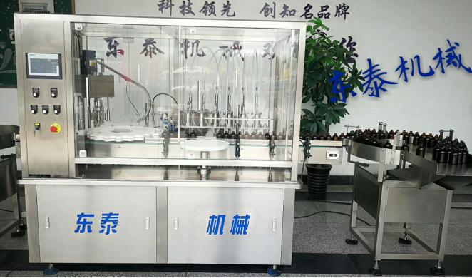 對于注重快速精準(zhǔn)的小瓶灌裝,迅捷機械拿出了自己的方案,那就是新一代的小瓶灌裝機。該小瓶灌裝機屬于全自動旋轉(zhuǎn)式,適用于小劑量液體灌裝,如精油、眼藥水、口服液、糖漿、電子煙油、藥液等。集灌裝旋蓋為一體,灌裝穩(wěn)定精準(zhǔn),旋蓋不傷瓶,是小瓶液體灌裝的理想機器。